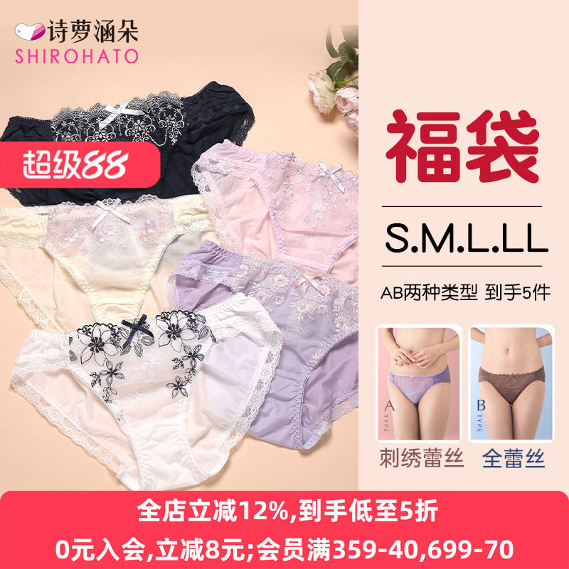SHIROHATO诗萝涵朵日本内裤女福袋性感蕾丝低腰女士三角内裤5条