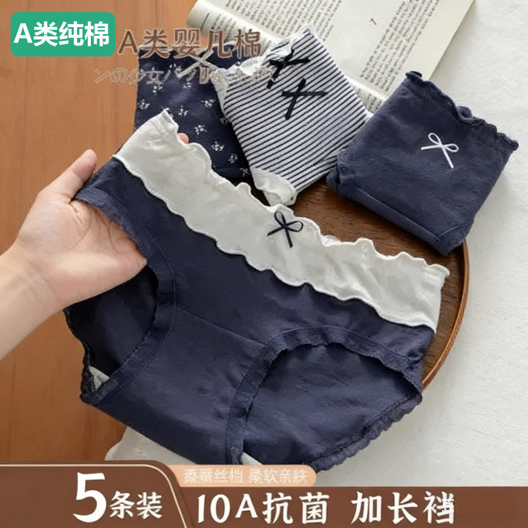 全棉女大童内裤10A抗菌桑蚕丝加长裆中腰儿童初中生高中生三角短