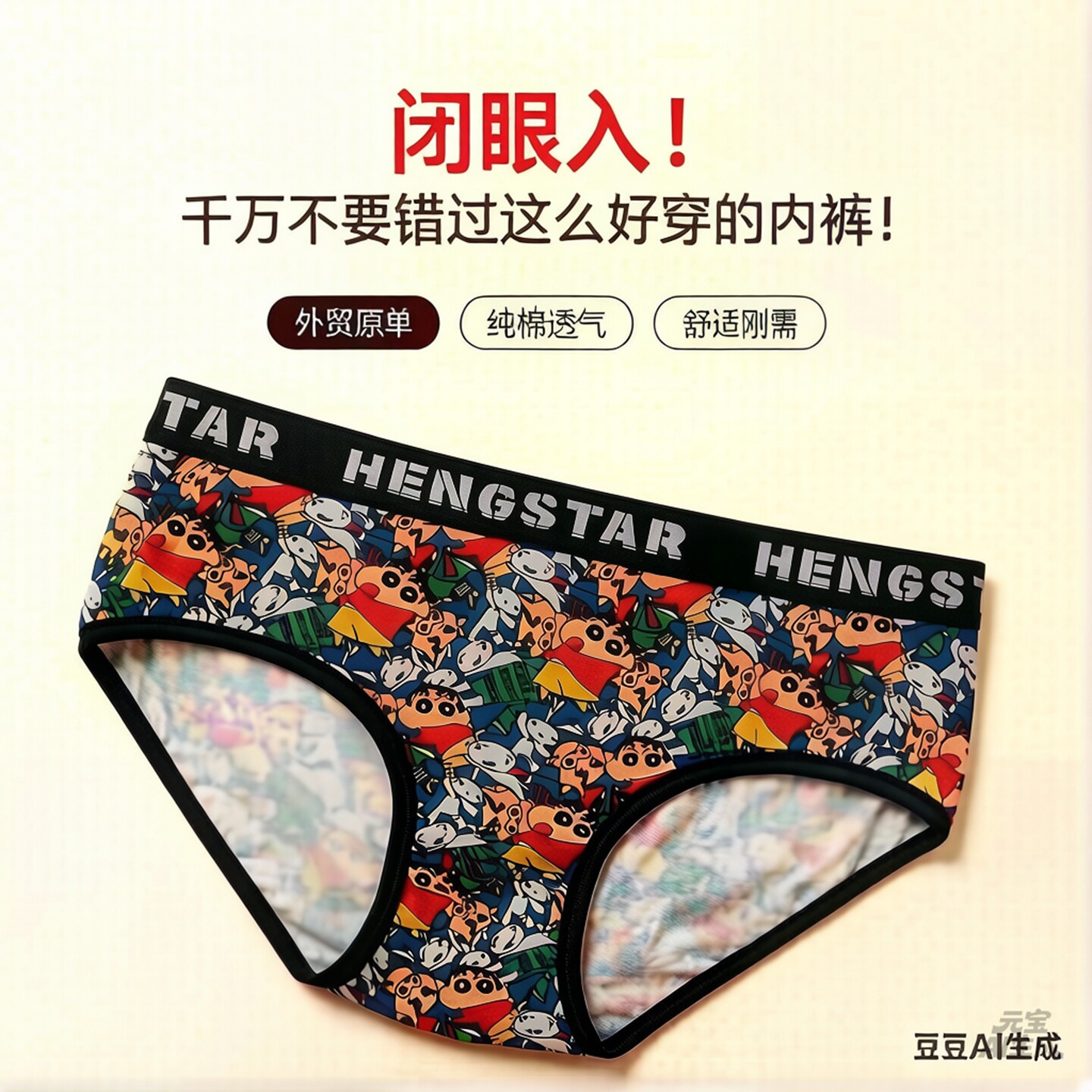女士内裤蜡笔小新卡通动漫可爱三角纯棉舒适中腰印花日系高级感夏