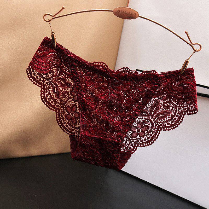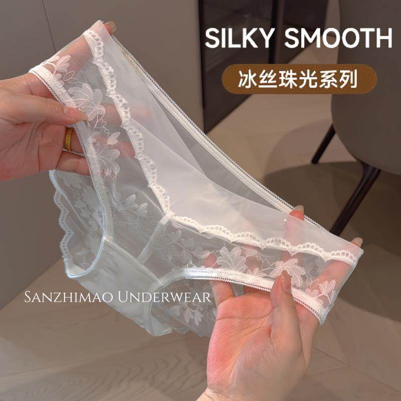 法式性感蕾丝内裤女士超薄纯欲镂空少女中低腰透气透明冰丝三角裤