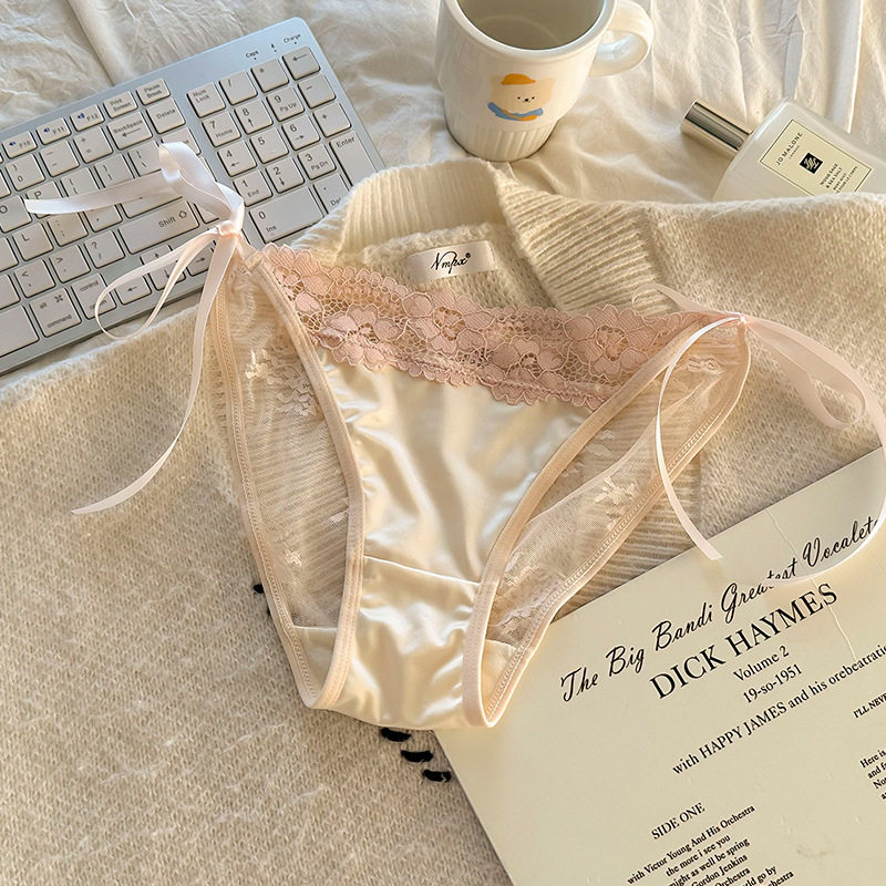 一扯就开~性感纯欲蕾丝内裤女士法式缎面内裤女绑带系带2026新款