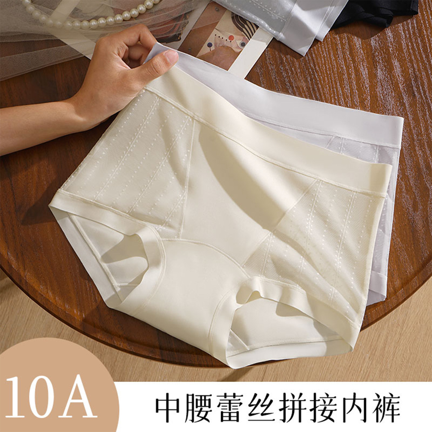 雅黛俪高腰蕾丝内裤女士桑蚕丝底档无痕不夹臀高腰收腹提臀平角裤