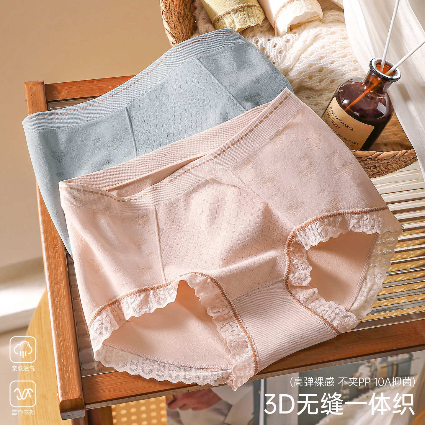 甜美中腰无缝一体女士三角裤3D亲肤不夹臀蕾丝边收腹内裤2026新款