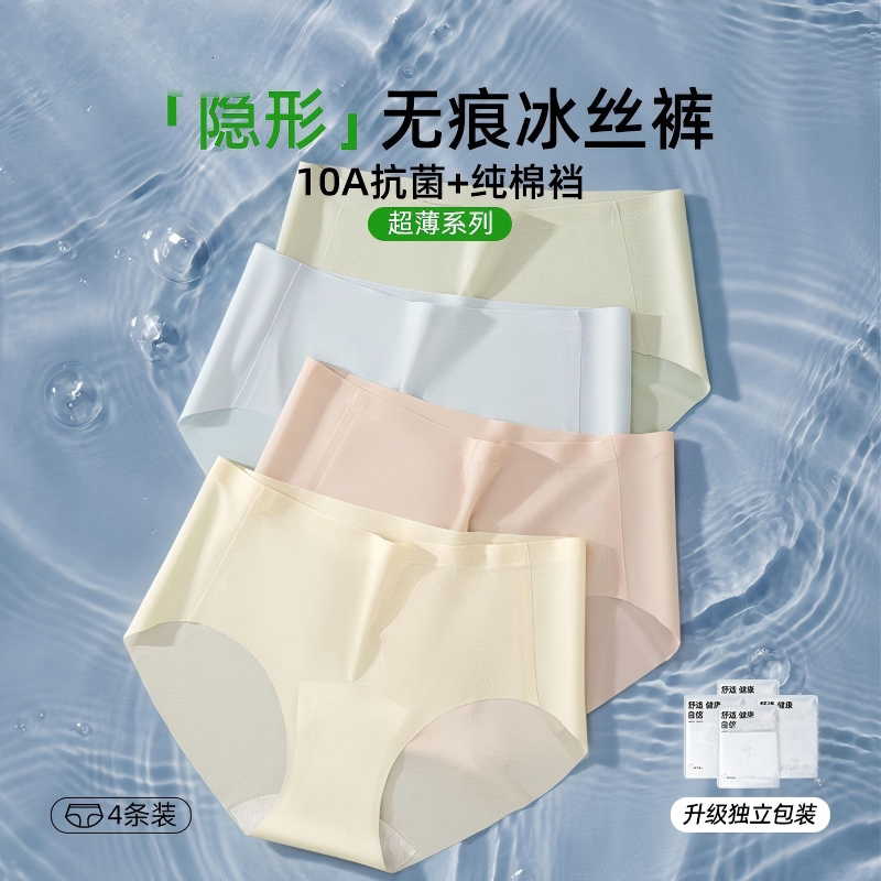 【6条】冰丝一片式无痕内裤女中腰性感舒适透气薄款三角裤头女夏