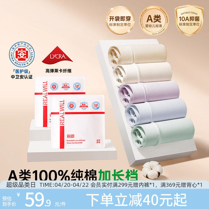 润微莱卡棉内裤女新款纯棉加长底裆大码无痕女士三角裤短裤夏薄款