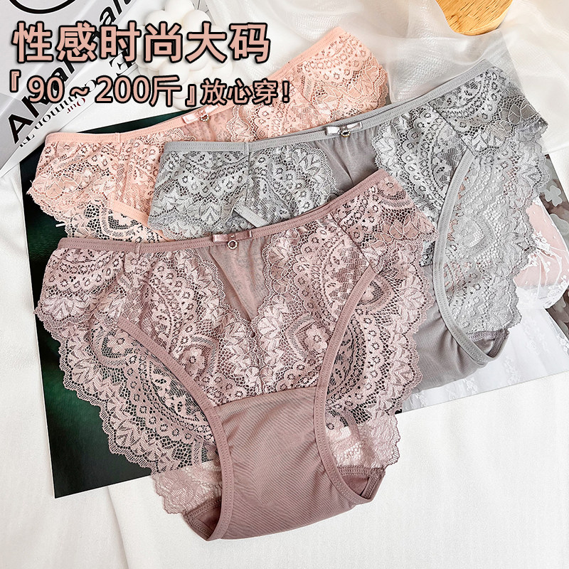 性感蕾丝内裤女胖mm大码200斤2024新款透明网纱高弹中腰棉裆薄款