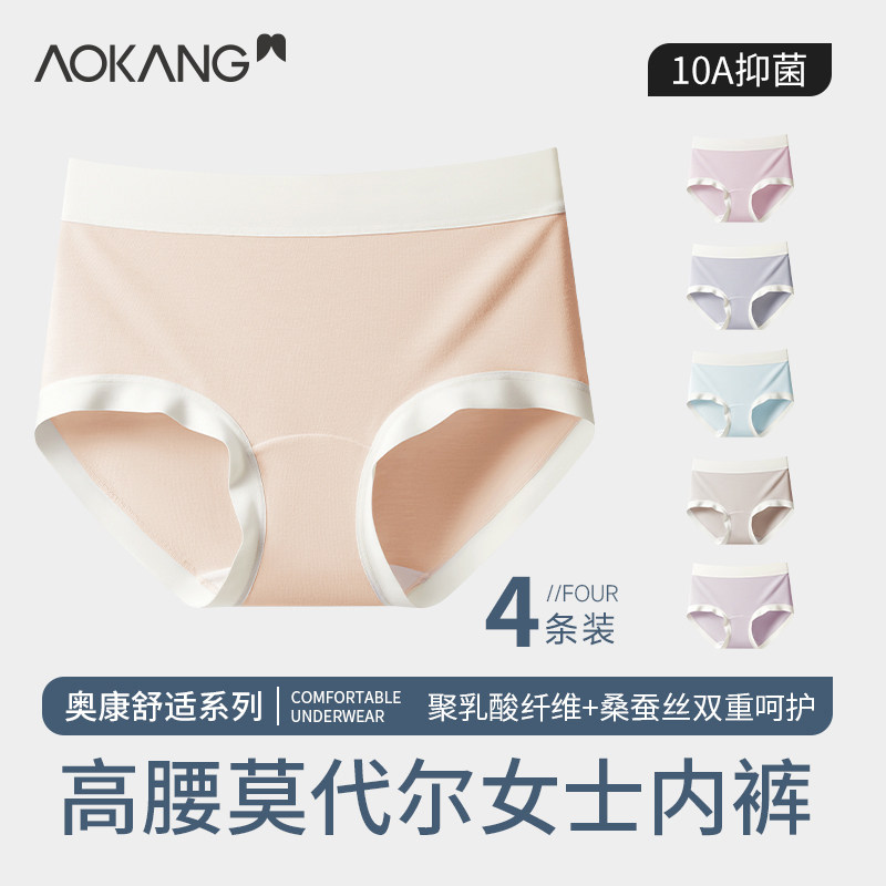 5条装樱姿娜311排汗裤桑蚕丝裆莫代尔透气干爽轻薄高腰无痕女内裤