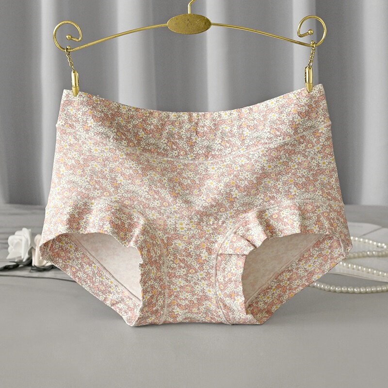 纯棉内裤女士中腰全棉裆腰边碎花包臀不夹N屁收腹夏季薄款三角裤