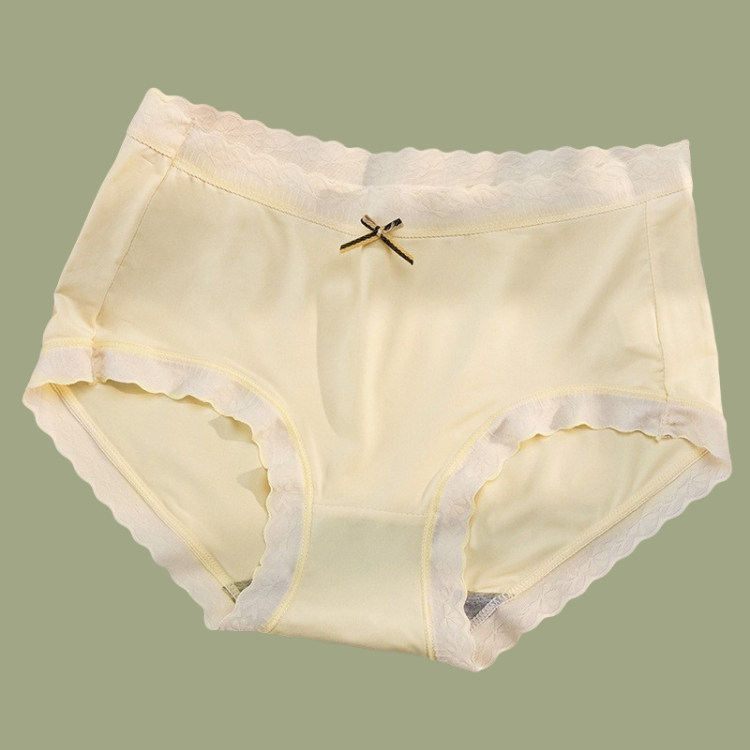 少女冰丝内裤大码高弹女士薄中腰无痕透气撞色蝴蝶结透气裆三角裤