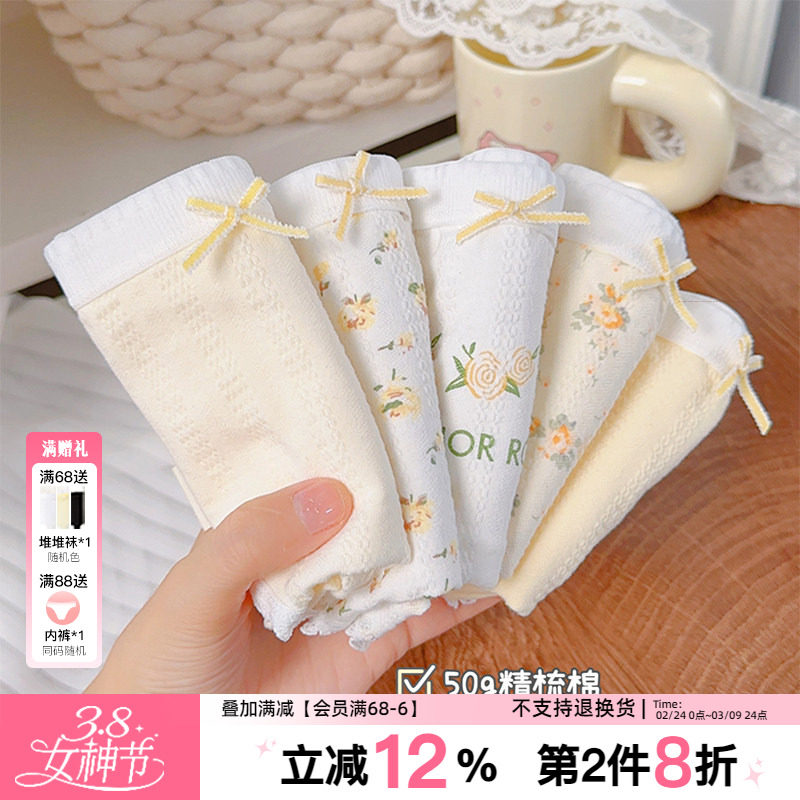 8条装 纯棉法式碎花纯棉女士中腰内裤女透气软糯舒适少女三角内裤