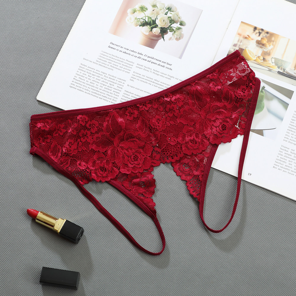 新款女士性感全蕾丝开档免脱内裤女纯欲风镂空网纱透气舒适三角裤