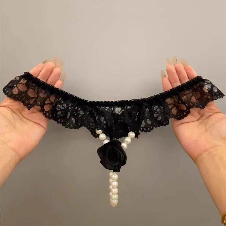 女士内裤情侣款激情丁字裤刺绣一根绳t字大珍珠内裤性感火爆蕾丝