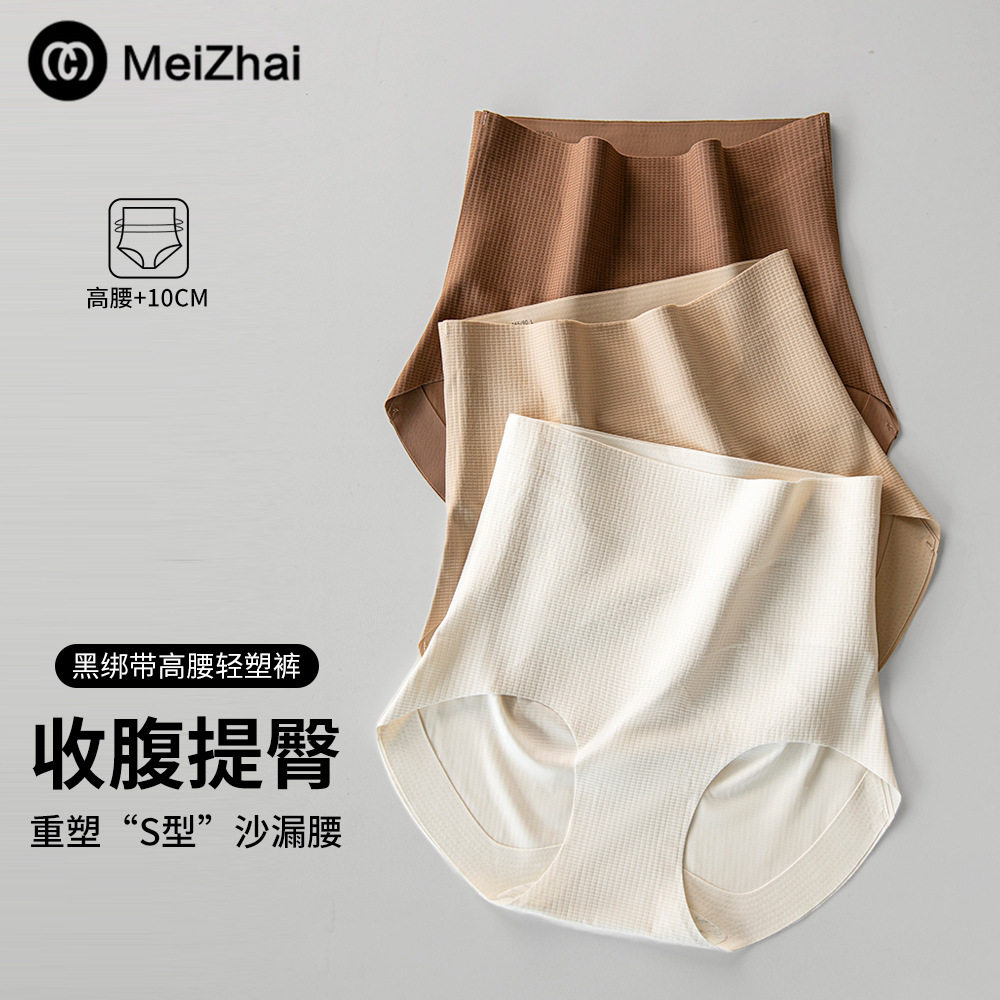 高级感纯棉收腹内裤女士收小肚子高腰提臀产后全棉裆无痕三角短裤