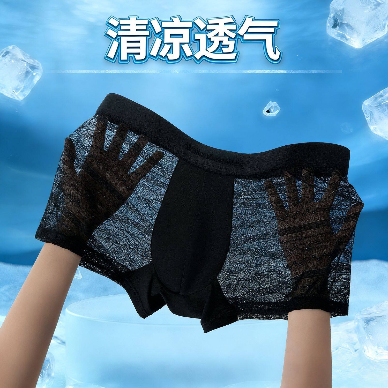 透气性感透明冰丝男士平角内裤网纱四角短裤夏天速干底裤2026新款