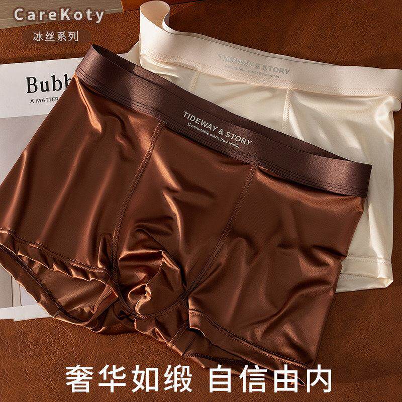 DGVV缎面男士内裤冰丝冰感轻奢简约美拉德夏薄透气男生中腰四角裤