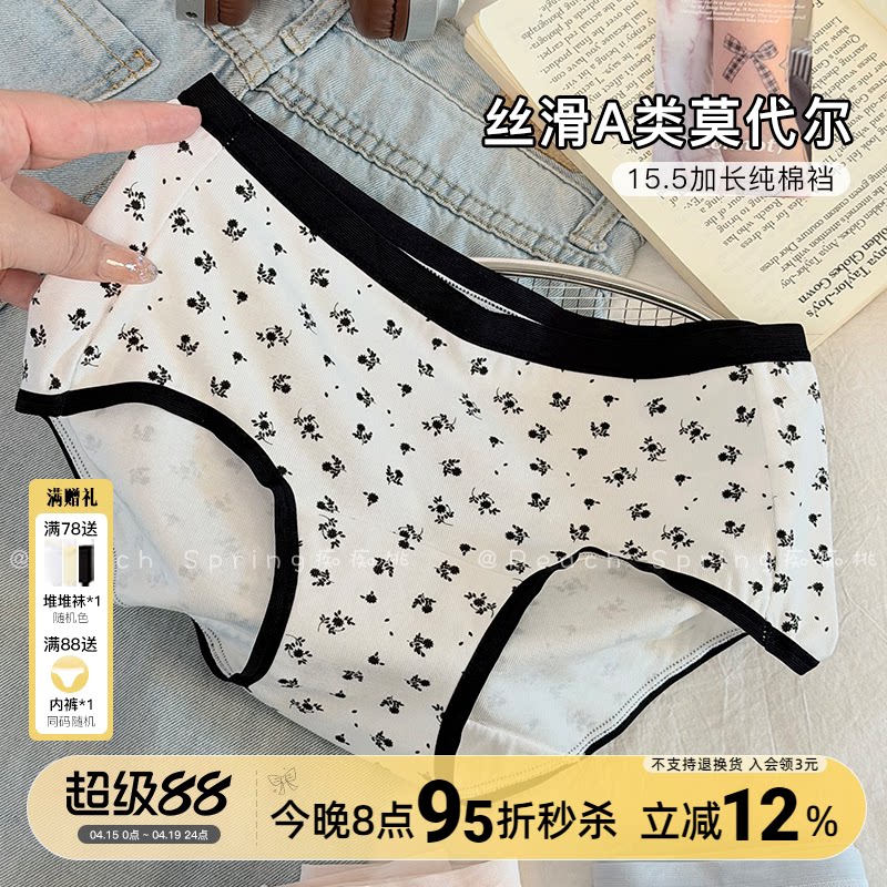 「风铃恋曲」莫代尔包臀少女中腰内裤三角A类棉15cm加长档可裸睡