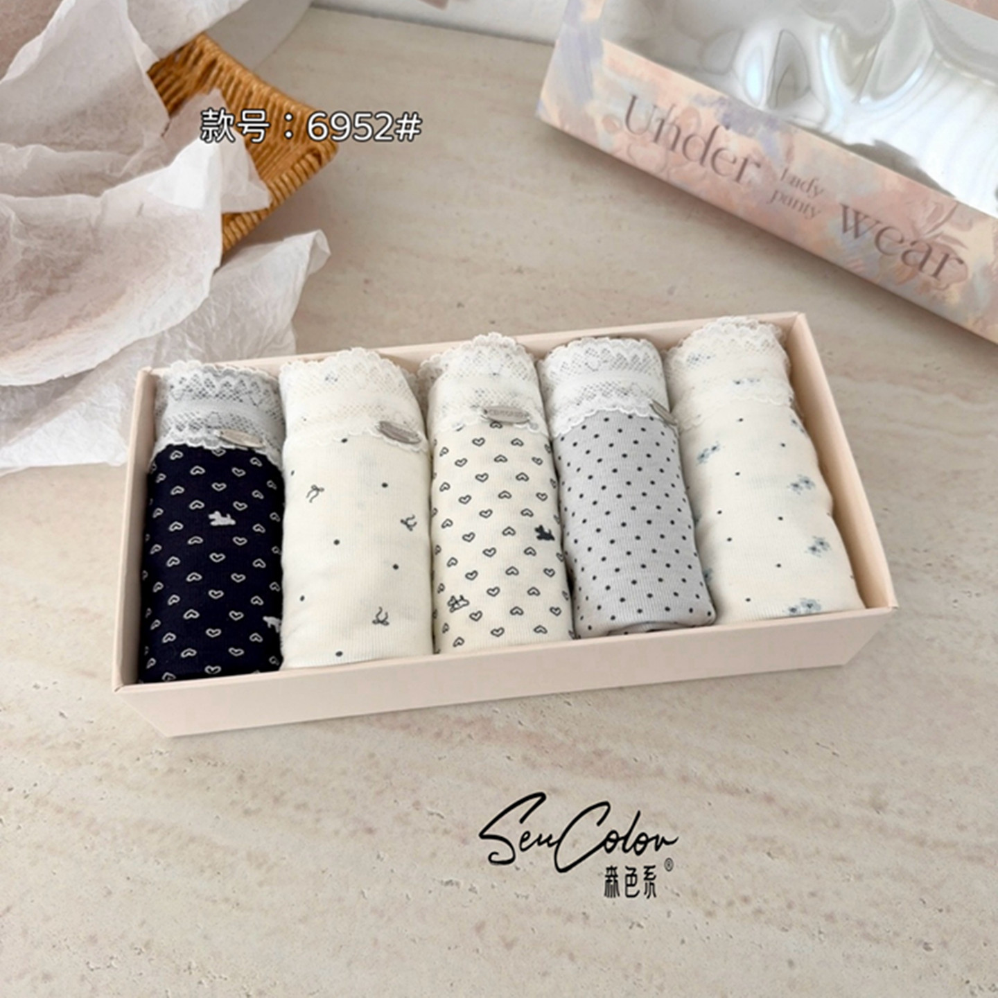 森色系五条装新品性感蕾丝花边桑蚕丝透气内档中腰三角内裤女6952
