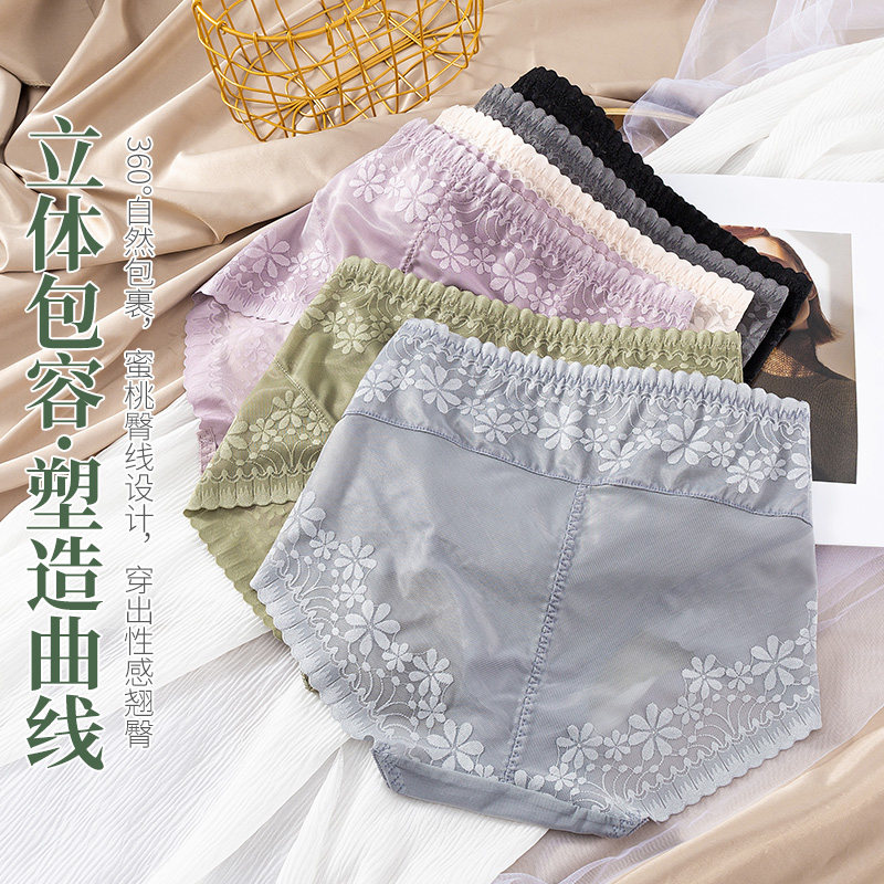 新款高腰收腹内裤女性感提臀无痕蕾丝女士大码透气网纱舒适包臀