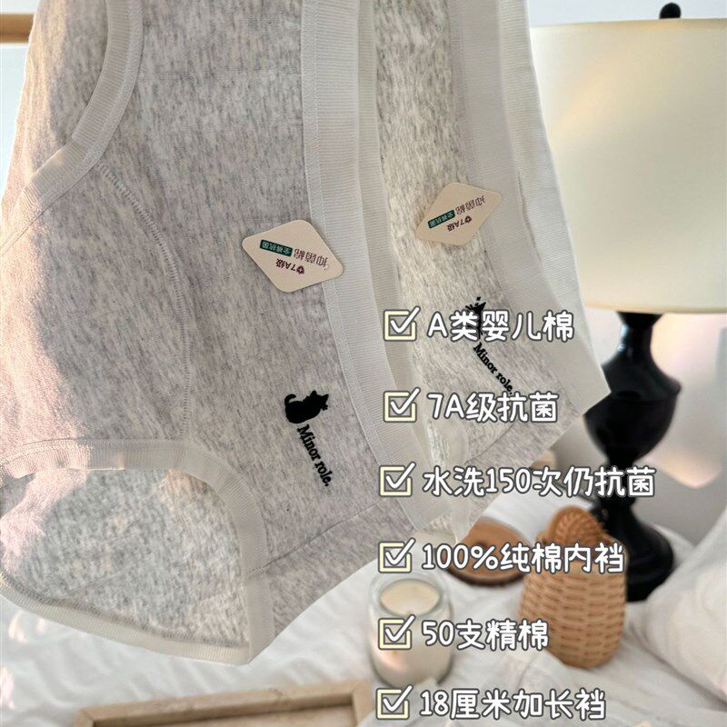 灰色古早感。18厘米加长档内裤婴儿棉纯色简约7A抗菌猫咪少女底裤