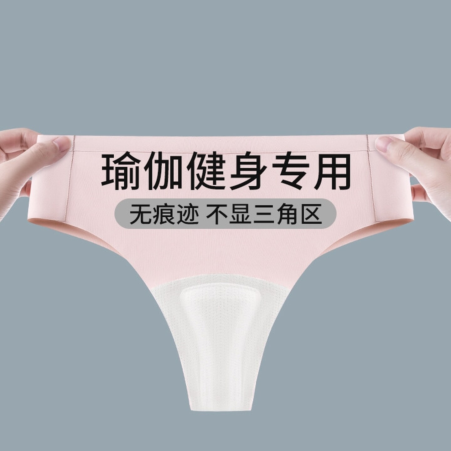 瑜伽内裤运动健身丁字裤女中腰冰丝隐形无痕防尴尬神器海绵垫里档