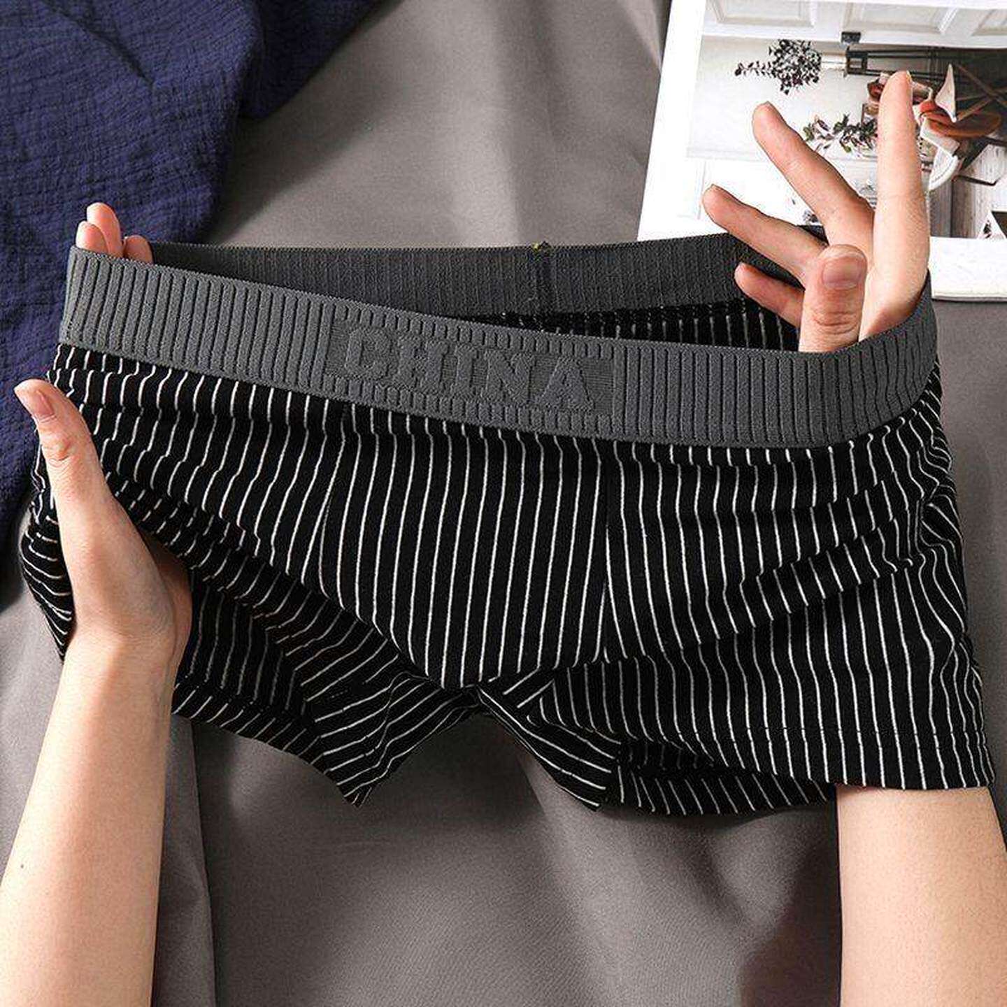 新款男士内裤男纯棉透气平角裤潮流高档四角裤舒适条纹裤衩男裤头