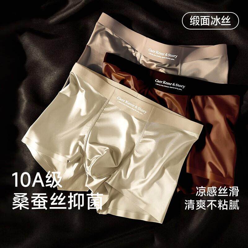 DGVV无痕真丝缎面冰丝男士内裤桑蚕丝夏薄男生四角平角裤四季可穿