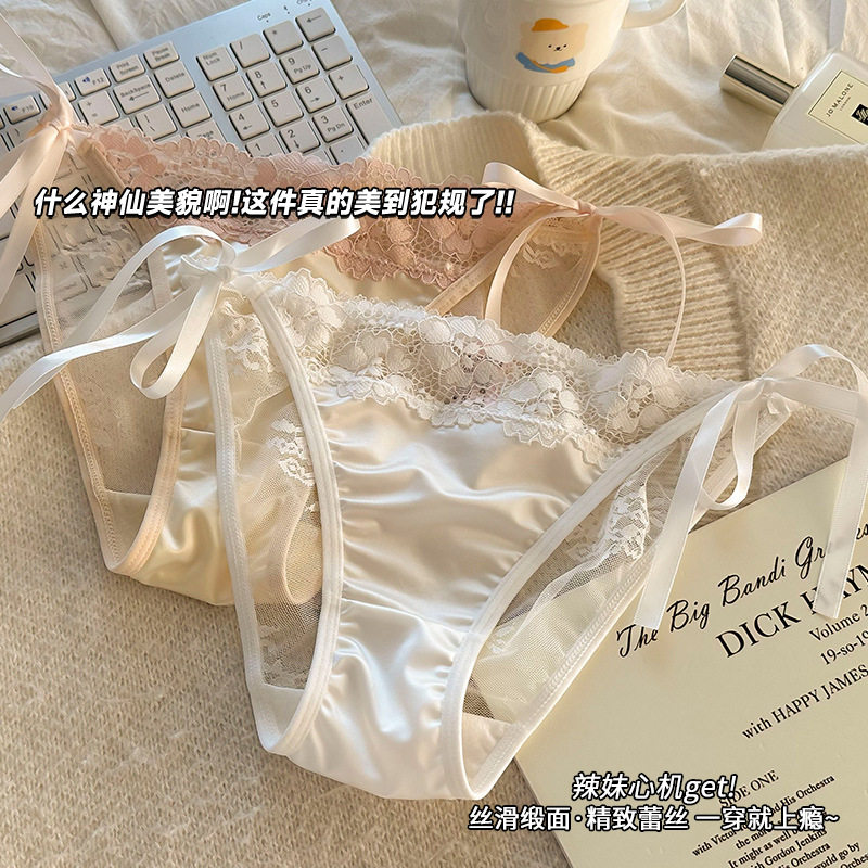 一扯就开~性感纯欲蕾丝内裤女士法式缎面内裤女绑带系带2026新款