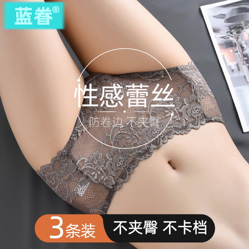 LAP新款纯欲风蕾丝提花中腰无痕内裤 舒适透气莫代尔裆三角女内裤