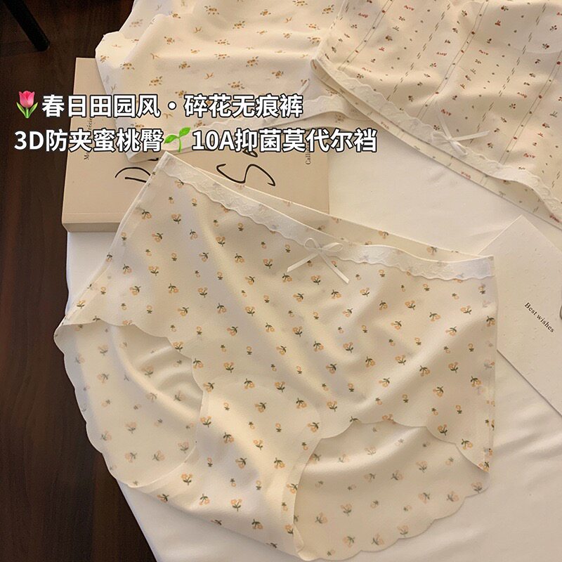 日系甜美碎花蕾丝无痕内裤女加长裆舒适亲肤包臀透气女士三角裤