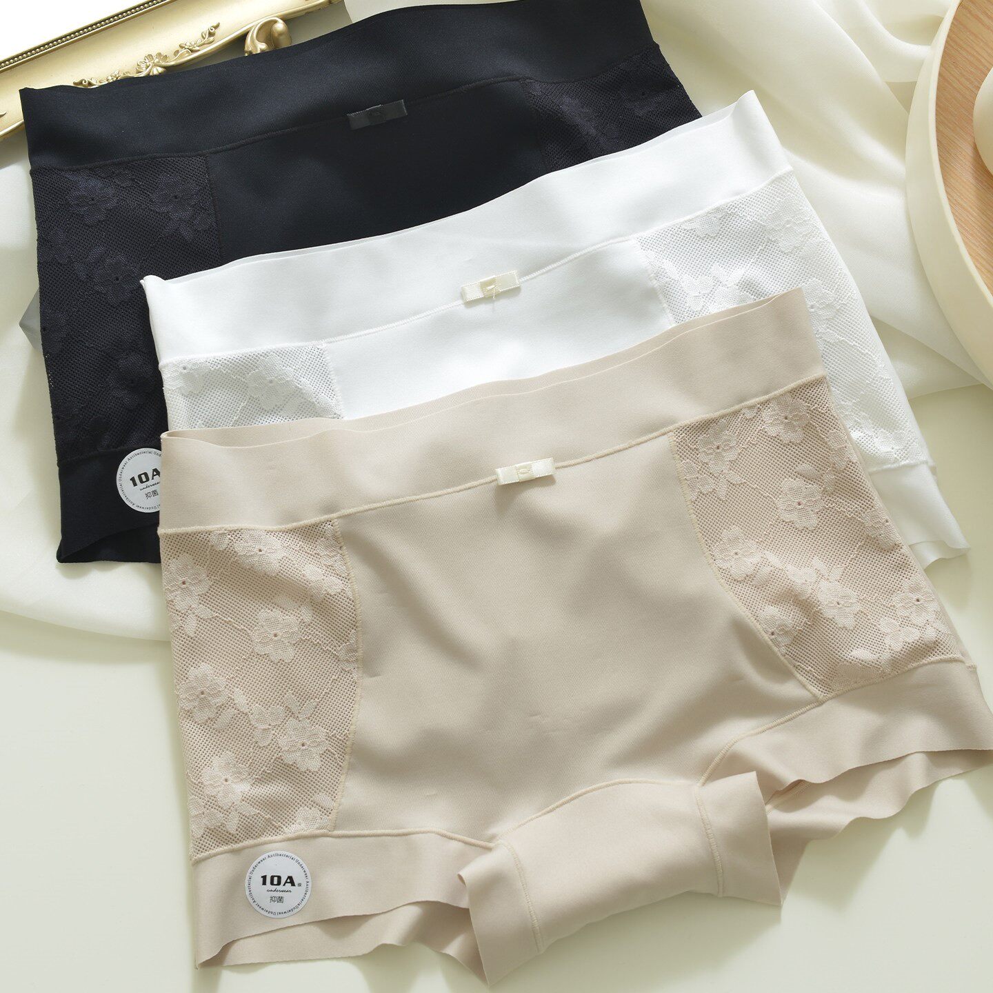 夏季新款性感蕾丝拼接冰丝无痕小平角内裤女士柔软透气打底安全裤
