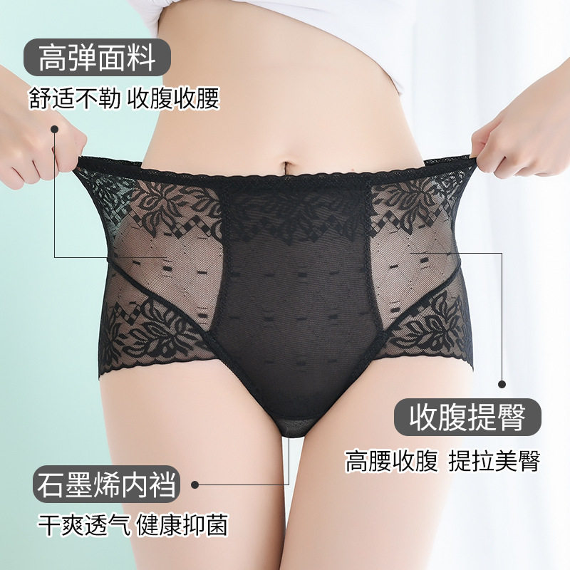 性感蕾丝女士内裤石墨烯纯棉无痕收腹提臀平角超薄透明高腰三角裤