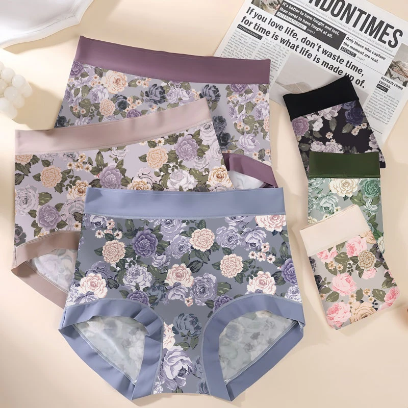 100A抗菌印花温变底裆大码女士内裤高腰无痕舒适透气三角内裤
