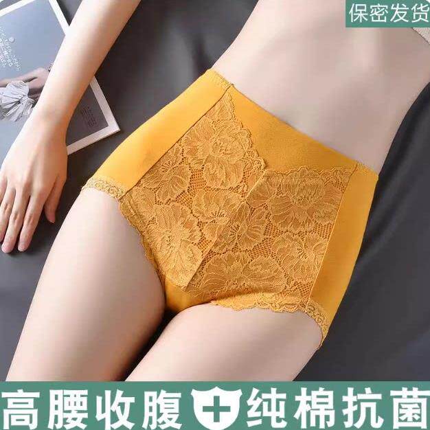 高腰内裤女纯棉抗菌收腹提臀性感大尺码迷人束腰棉质蕾丝边女士裤