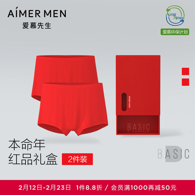 【礼盒两件包】爱慕先生本命年红品内裤系列男士平角内裤NS23C962