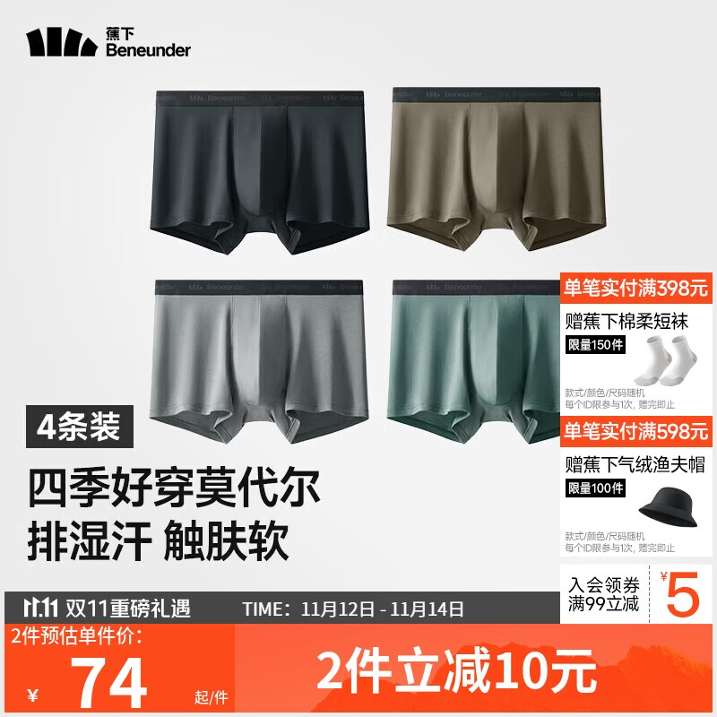 蕉下男士肤感莫代尔内裤透气平角短裤头抗菌不卡裆防夹臀四角内裤