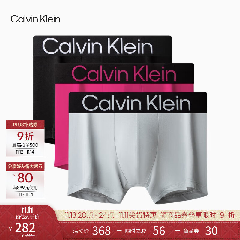 Calvin Klein内衣25秋季新款男士三条装醒目提花ck棉质防夹臀四角裤平角内裤男 ZBF-太空黑/大理石灰/庞贝红 M
