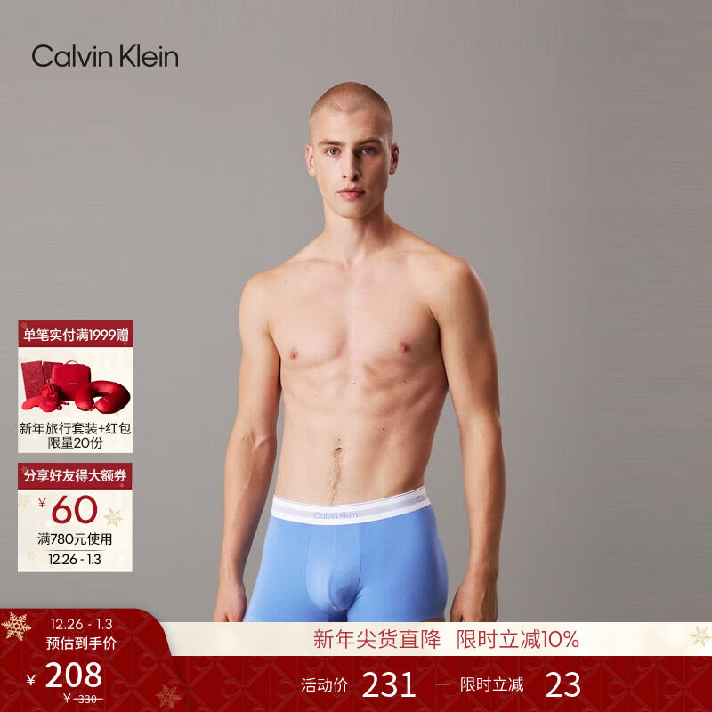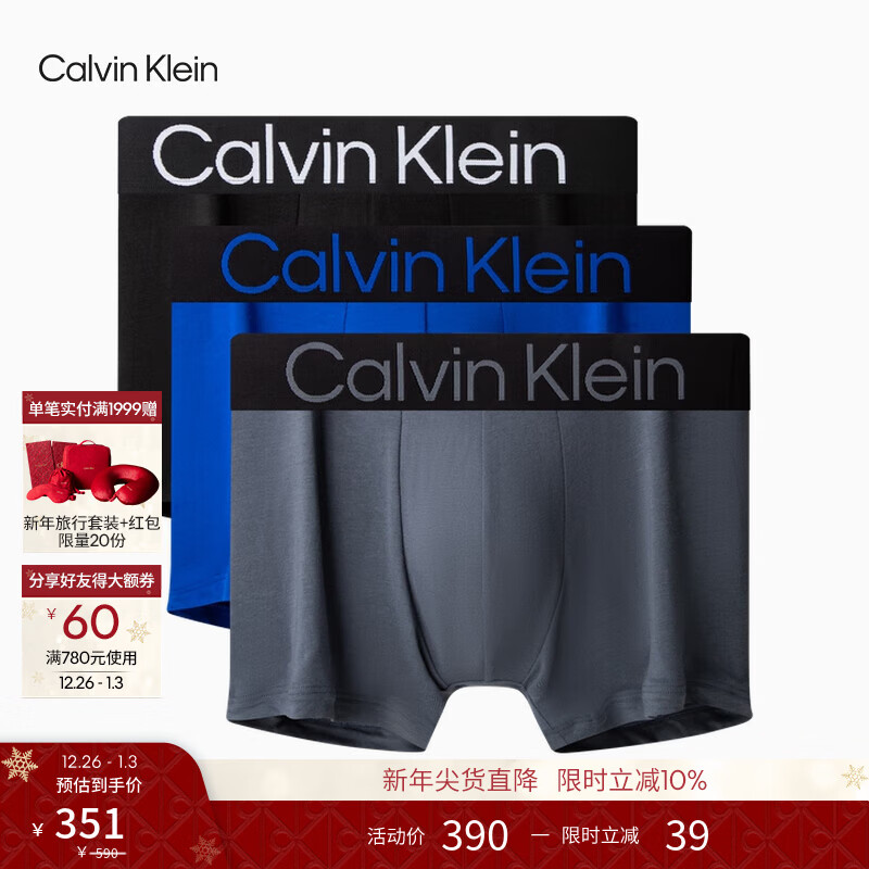 Calvin Klein内衣25秋男士本命年新年红三条装醒目提花ck棉质防夹臀平角内裤男 Z2Q-太空黑/宝石蓝/炭灰 M