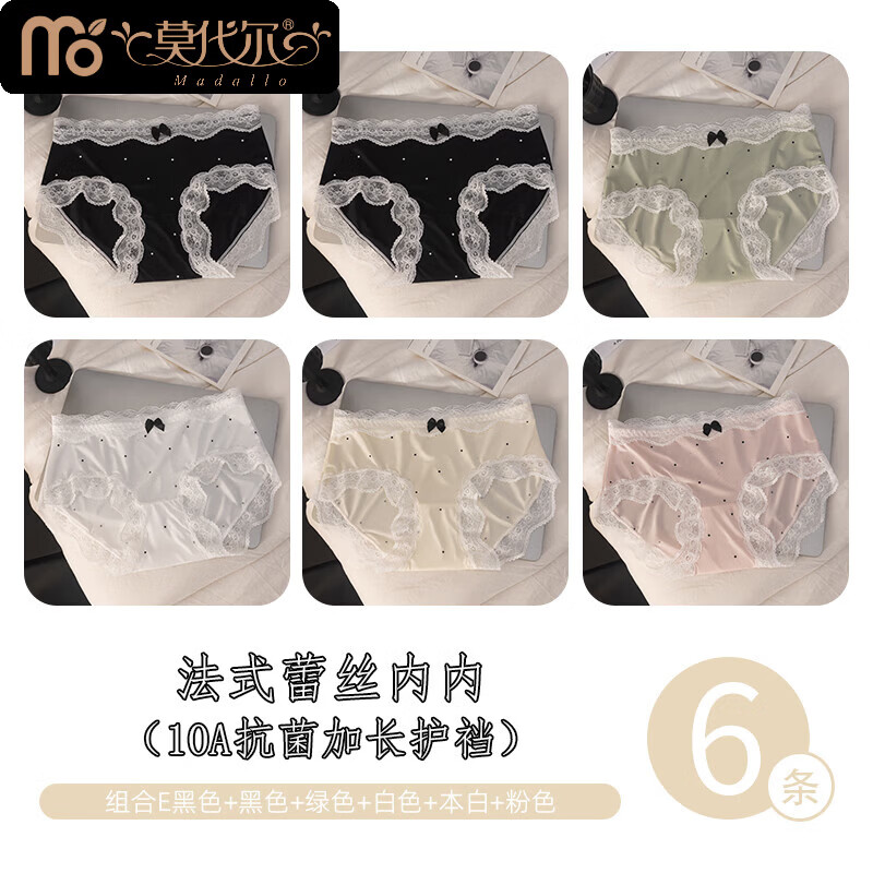 莫代尔高颜值法式蕾丝内裤10a级抗菌女性感纯欲风舒适高级感超轻薄透气 E组:黑色+黑色+绿色+白色+本白+粉色(6条) M
