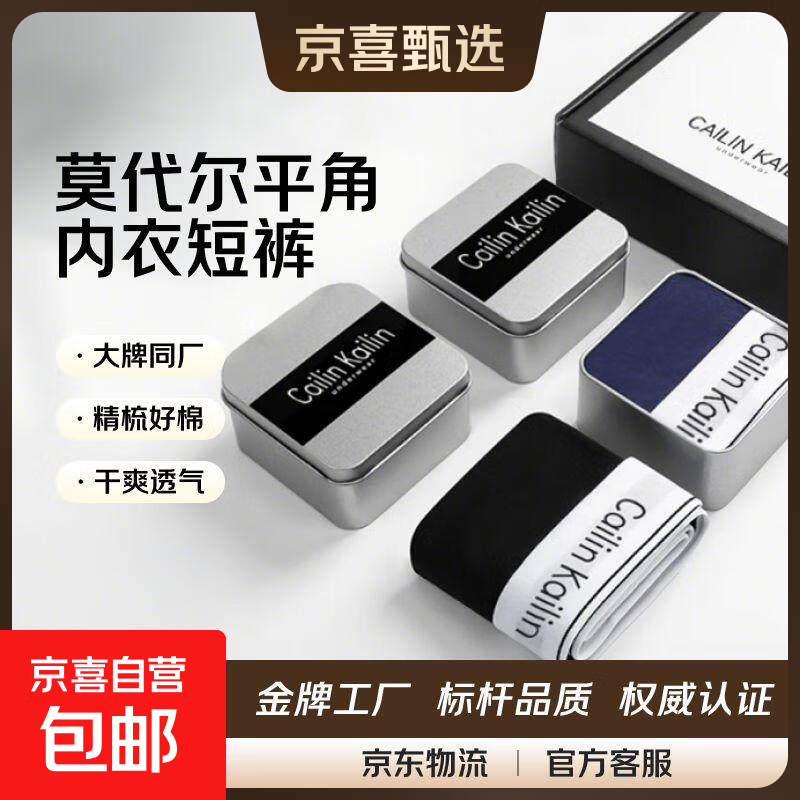 【CK制造商】高级内裤礼盒男士莫代尔平角裤四角内衣短裤男友礼物 随机颜色发货(不带礼盒) 2条 XL (175) 121-150斤