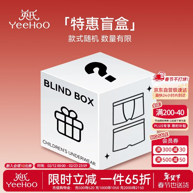 英氏(YEEHOO)【内裤盲盒】儿童内裤纯棉系列男童女童吸湿透气内裤款式随机110