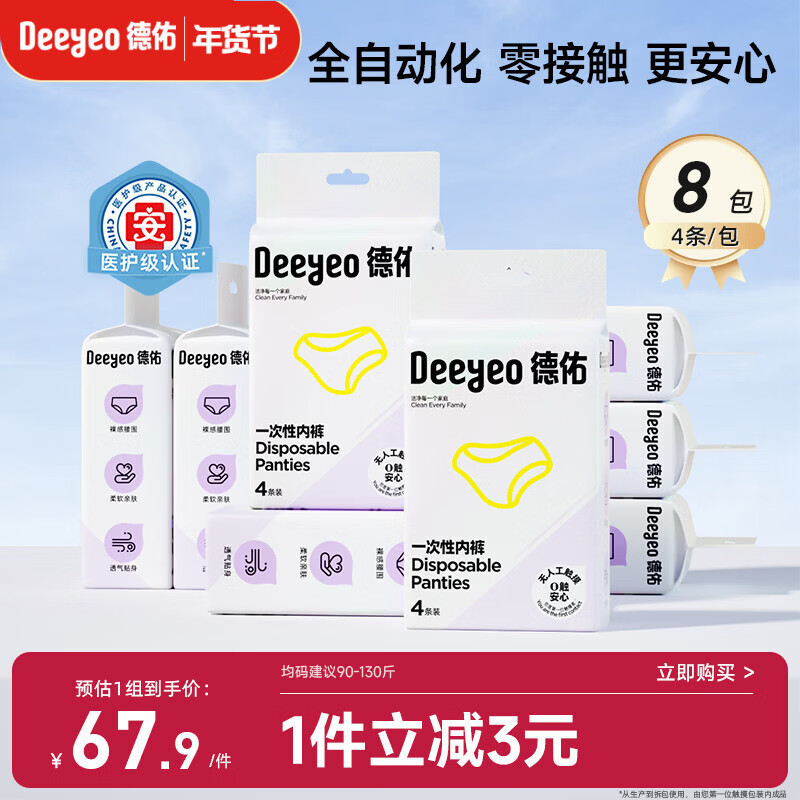 德佑一次性内裤女孕产妇出差生理期32条90-130斤无纺布【 安全灭菌】