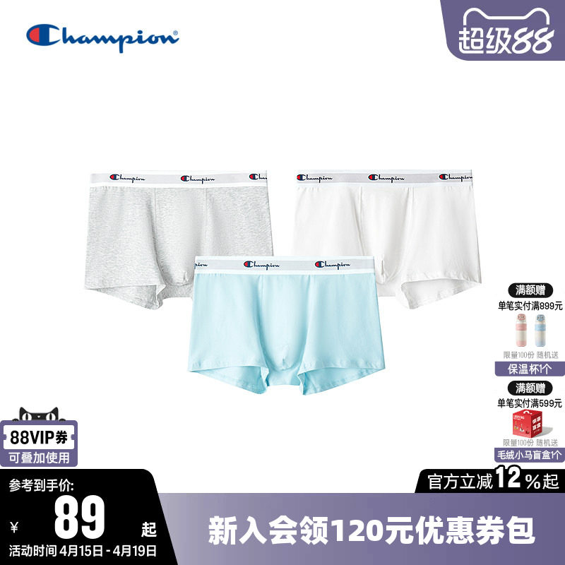 Champion冠军男士内裤2026新款潮牌舒适四角裤平角裤短裤三条装