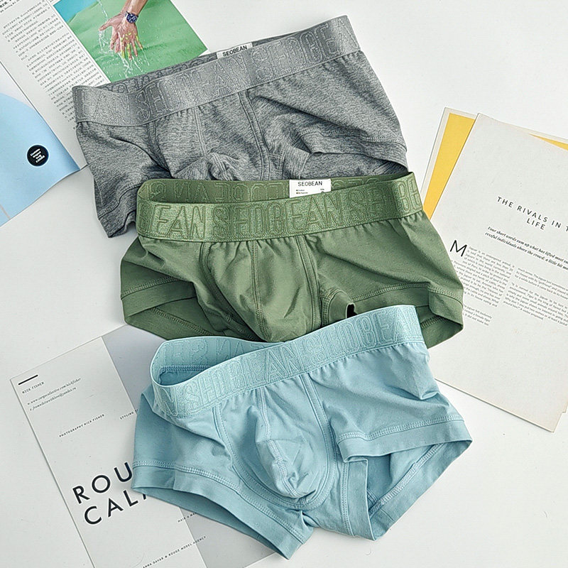 古妃正品3条盒装无痕莫代尔男士平角内裤艾草抗菌透气四角短裤头