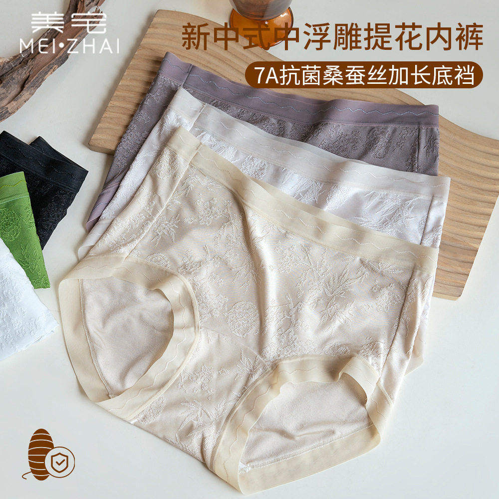 畅烨国风桑蚕丝三角内裤女拍一发四7A抗菌中腰无痕三角裤冰丝提a4