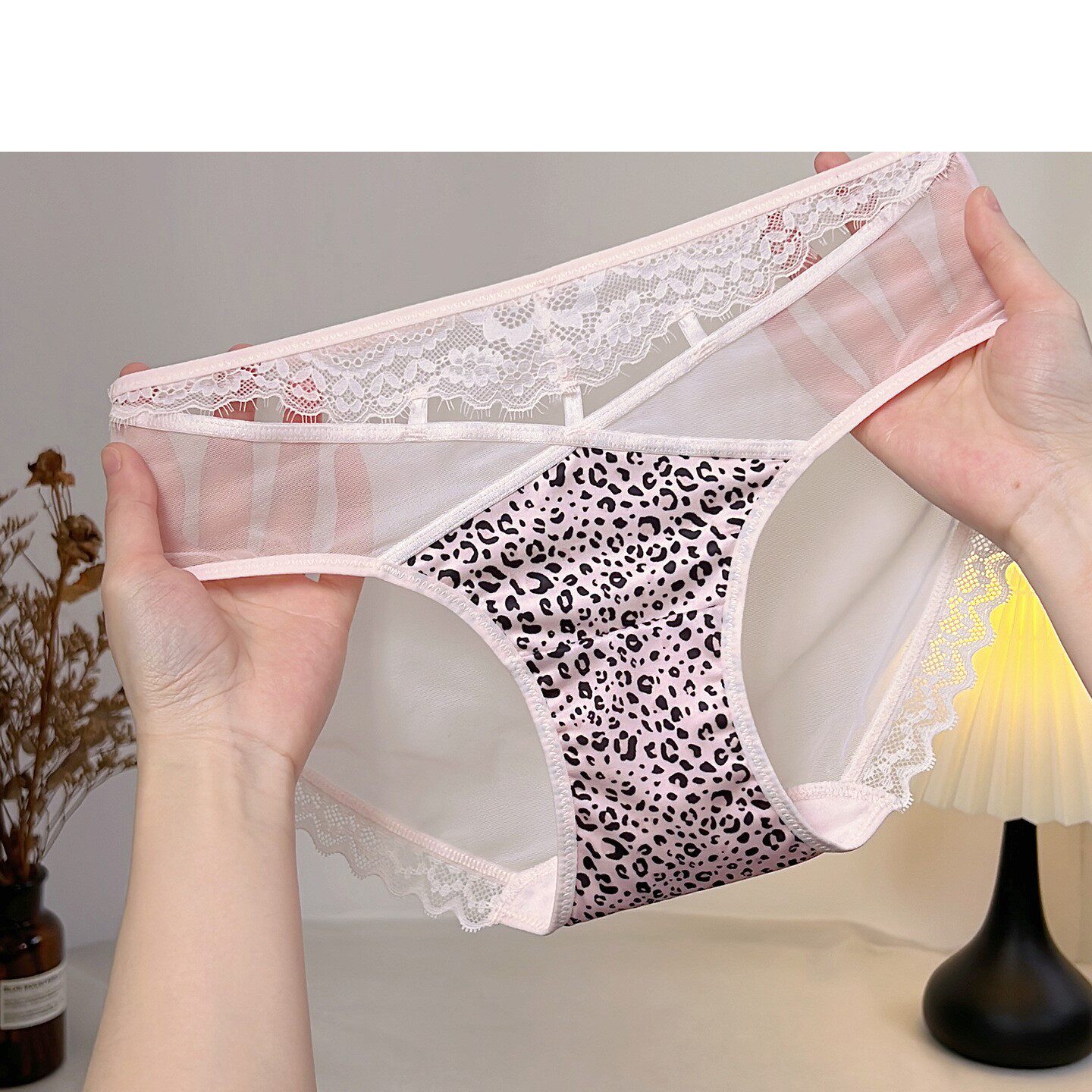 豹纹欧美甜美少女三角裤衩低腰纯欲网纱性感蕾丝镂空女士透气内裤