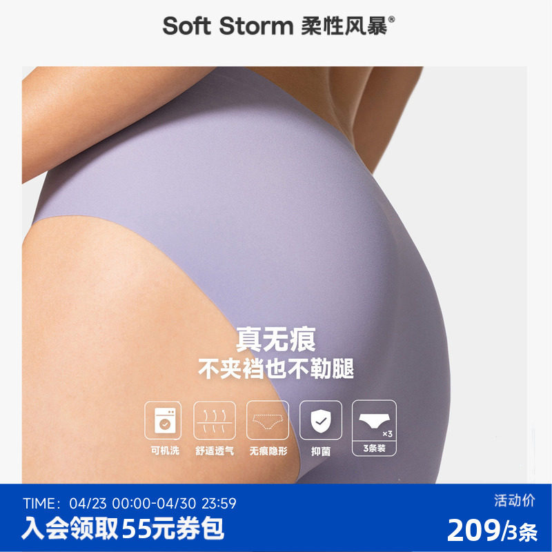 柔性风暴无痕内裤女士7A级抗菌健身中腰三角内裤纯棉底裆2026新款