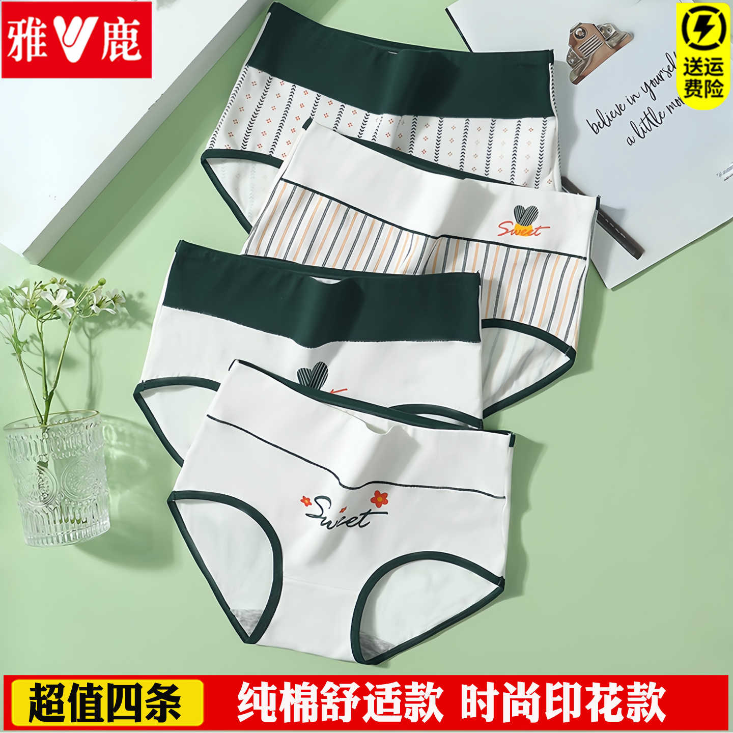 雅鹿女士内裤女纯棉抗菌中腰少女生可爱卡通加大码白色三角短裤头