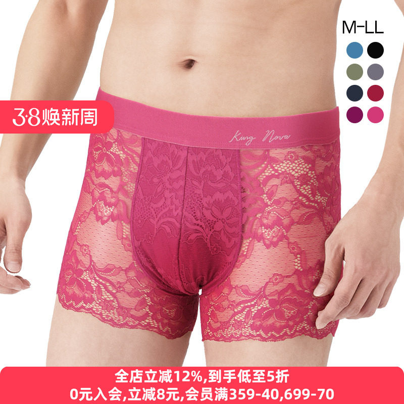诗萝涵朵SHIROHATO男士内裤日系蕾丝花边平角裤本命年红色四角裤