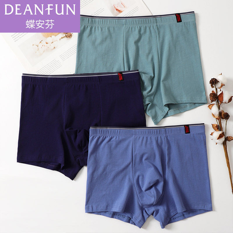 蝶安芬男士内裤男中腰平角纯色棉质柔软舒适透气简约休闲四角裤头