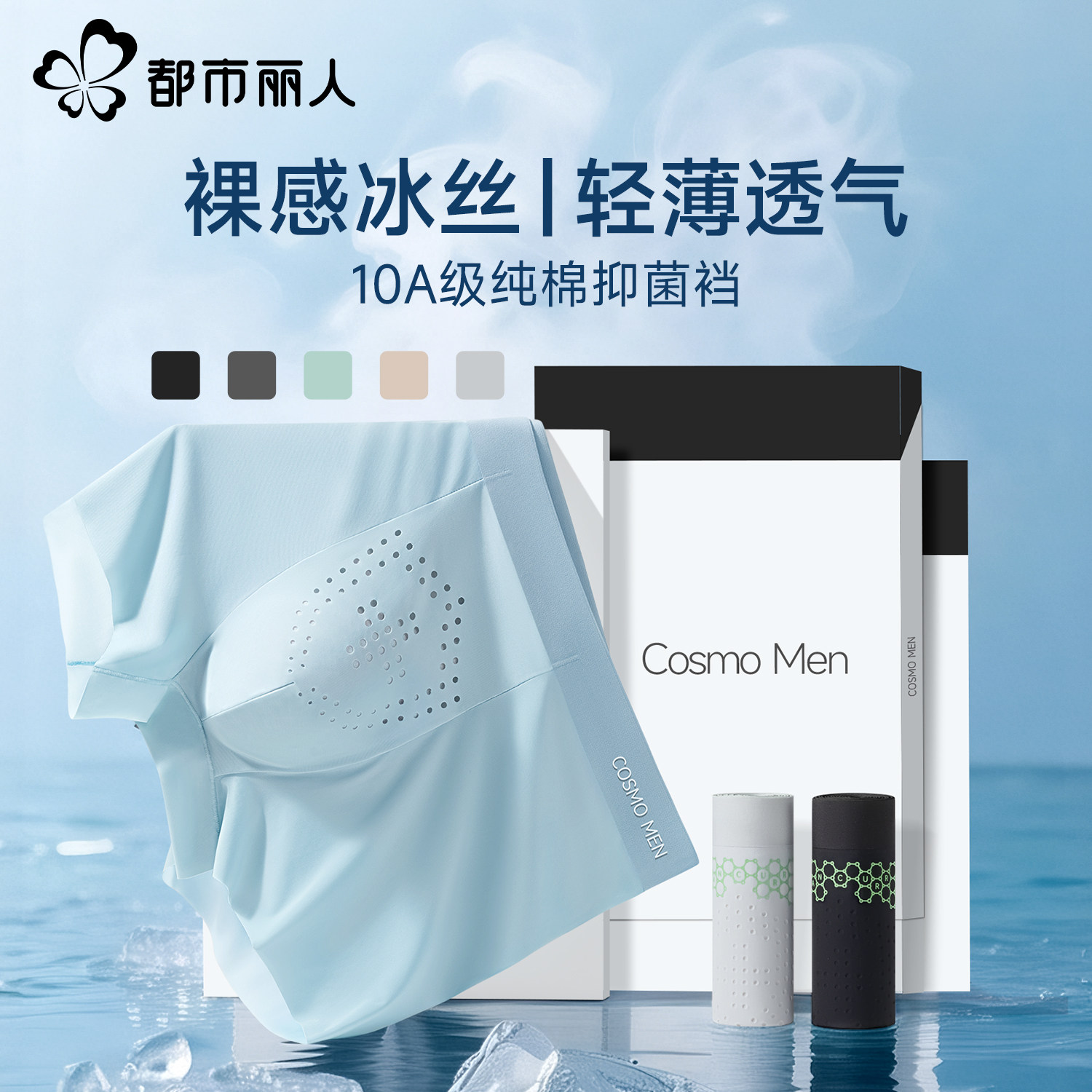 都市丽人冰丝男士内裤夏季2026新款纯棉全棉裆透气男生大码平角裤